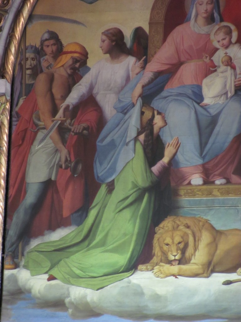 - During the Middle Ages, it was common to depict the Virgin Mary with a lion, often placed at her feet or nearby. The lion is associated with the solar plexus, which is considered the seat of courage and power in ancient mystic traditions. This connection between the Virgin Mary and the lion can be observed in ancient art from both the Western (e.g., Rome and Greece) and Middle Eastern traditions, with Roman armor frequently featuring a lion’s face at the solar plexus.